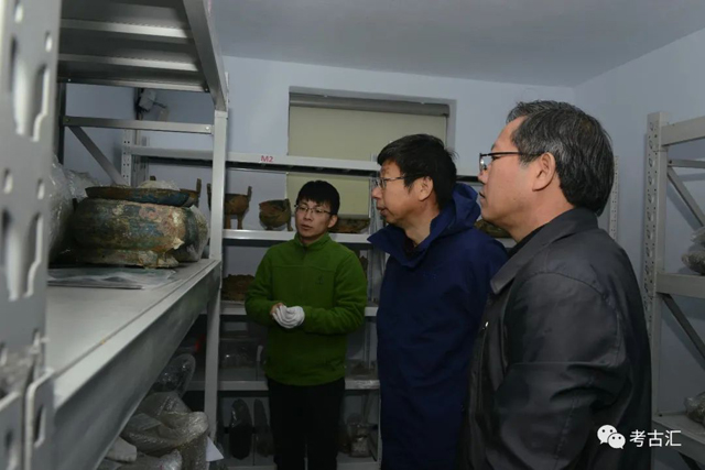 中國(guó)考古學(xué)會(huì)理事長(zhǎng)王巍先生在我院王曉毅院長(zhǎng)陪同下觀摩指導(dǎo)
